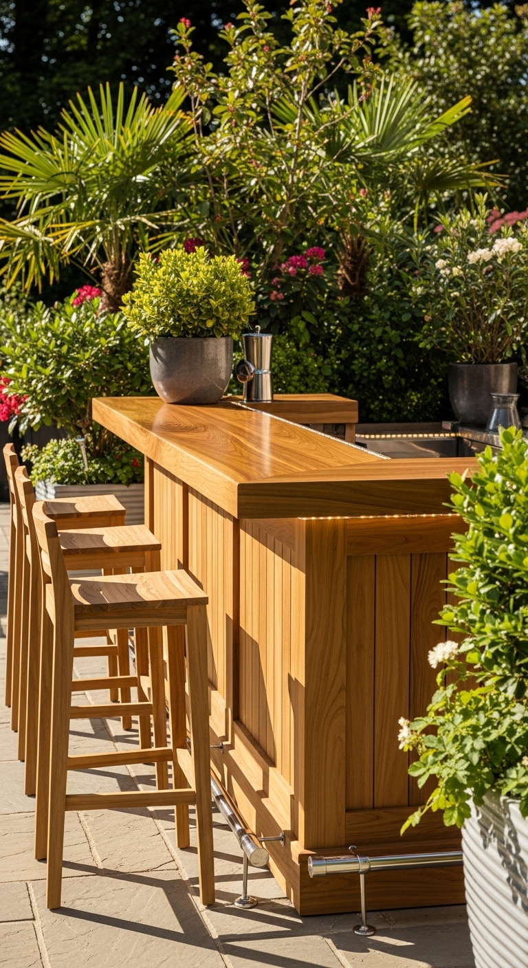 - Bars extérieurs en bois traité pour terrasses ou jardins.